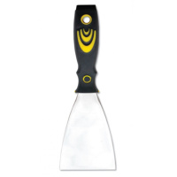 ОписаниеШпатель малярный с полотном из полированной нержавеющей стали и зеркальной полировкой. Шпатель имеет резино-пластиковую ручку, которая повышает удобство его пользования. Толщина полотна к середине меньше, чем у краев, что делает шпатель более эластичным и повышает эффективность работы. Ширина полотна: 100 мм.